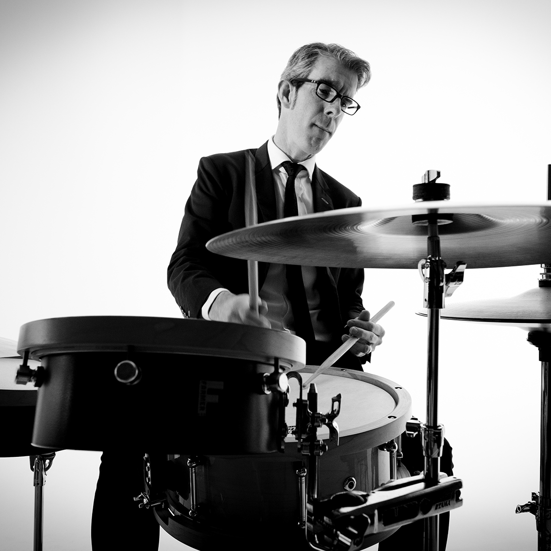 Ronnie has been playing percussion since he was a toddler when he used to jam along on tambourine to the likes of The Average White Band and Weather Report with his bongo-playing Dad, and started playing drum kit at 11 . For several years he had weekly lessons from former Tubby Hayes/Stan Tracey/Georgie Fame drummer Bill Eyden whilst at High School in Greenford in West London. Ronnie started to take music more seriously after joining Ealing Youth Orchestra at 16, which saw him perform with soloists from English National Opera and take part in several tours to France, where the orchestra performed to hundreds of people, including at St Malo Cathedral.